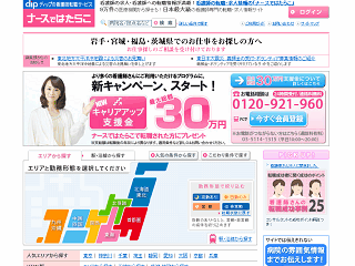 〜日本最大級〜1.看護師の転職情報サイトでは日本最大級の情報数があります!〜逆指名制度が使える〜 2.あなたの働きたい勤務先を逆指名する紹介システムを導入! 〜全国90%の病院に転職相談できる〜 3.あなたの希望する勤務先やお仕事が探せます!
