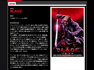 【作品概要】 『ブレイド』(MARVEL BLADE)は、アニマックスで2011年7月1日より放送されたテレビアニメである。マーベル・コミックの『ブレイド』を原作とした、日本のアニメ制作会社であるマッドハウスの作品。 (Wikipediaより) ...... もっと読む