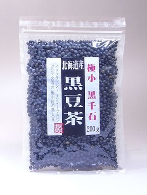 一般の国産大豆と比べると0.2%にも満たない希少な大豆を使用。 極小粒なために黒皮部分が多く黒豆茶の重要な成分のアントシアニン、イソフラボン、ポリフェノールが高い。