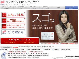 オリックスVIPローンカードはオリックスグループの個人向けローンカード。最高水準の実質年率4.8%〜14.8%と限度額700万円が大きな利点。また、会員特典が充実しているのも特徴です。